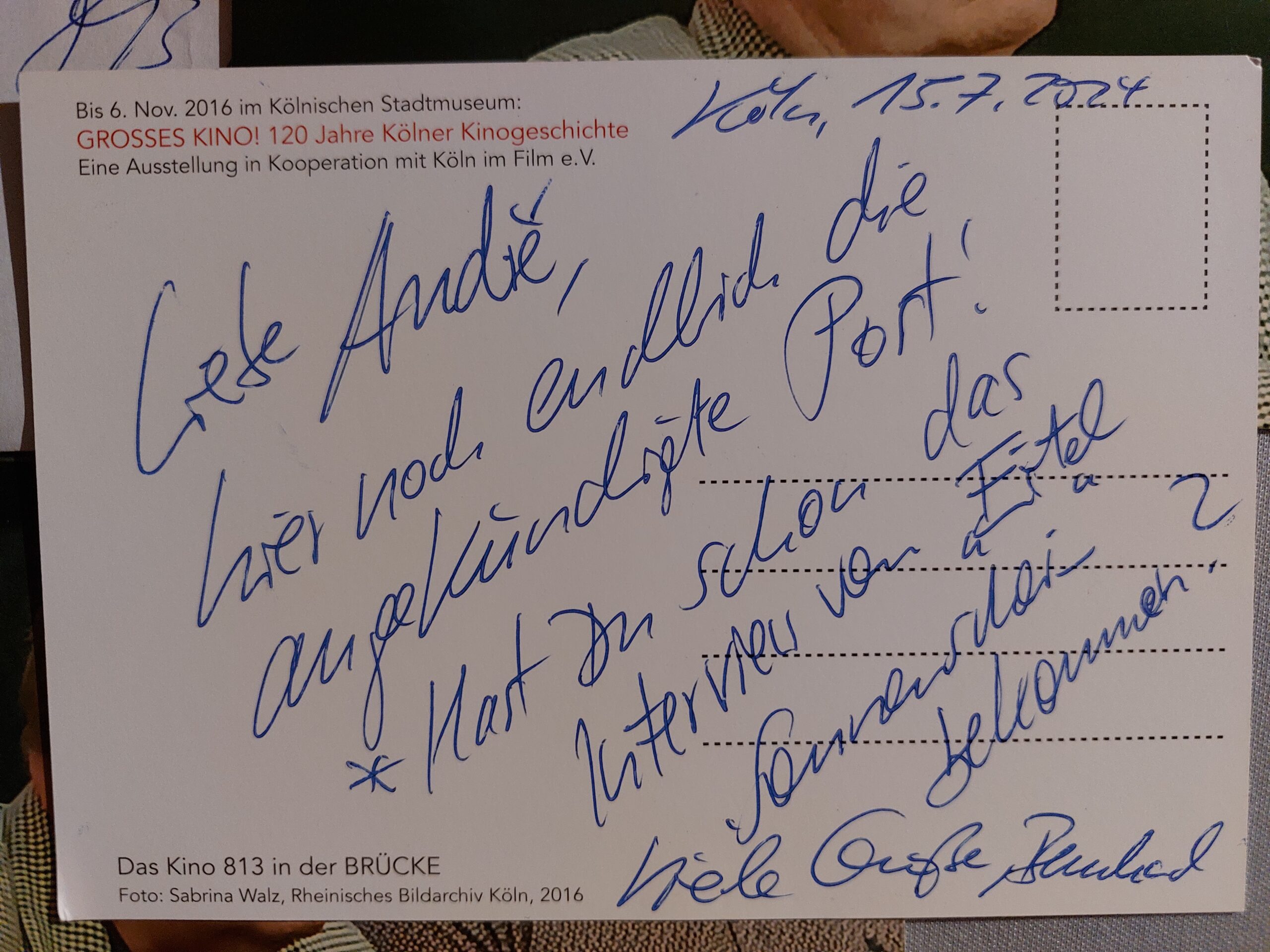 “Film zu Ende. Jetzt muss ich erstmal den Zug nach Köln kriegen. Dann mehr…”