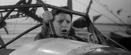 Obwohl die Menschen, die da gerade vor uns auf der Leinwand leiden, überzeugte Faschisten beziehungsweise deren indoktrinierter Hitlerjugendnachwuchs sind, geht dieser Anblick unweigerlich nah. So sind sie nun mal, die Regeln des Kinos. Es ist ein Bild so rein und gesellschaftspolitisch unschuldig wie die berühmte Einstellung aus Douglas Sirks „The Tarnished Angels“ (1958), in welcher der kleine Christopher Olsen seinen Filmvater Robert Stack mit dem Flugzeug ins Meer stürzen sieht. Hilflos gefangen im einen Augenblick zuvor noch freudsamen, seine Fahrt aber nun einmal noch nicht beendet habenden Jahrmarktkarussell wird ihm in der Kehrtwende eines Blinzelns schlagartig klar, dass die Welt sich weiterdreht, während in den Rotationen des eigenen kleinen Universums der Vater vor seinen Augen stirbt. Eine räumliche Reduktion, das kleine Fahrgeschäft ist groß, das eigentliche Leben klein, wie sie allein das Kino in dieser Intensität beherrscht.