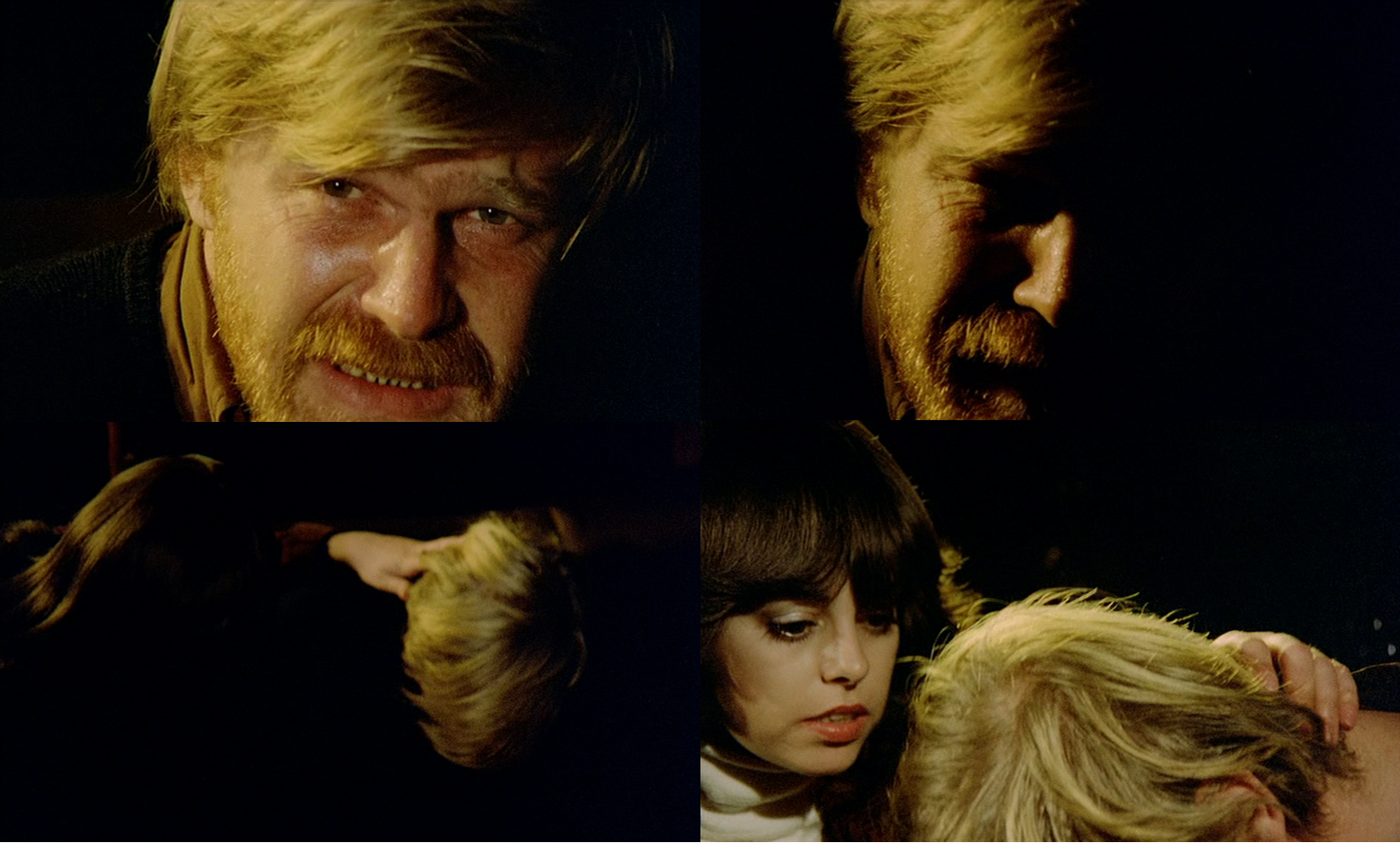 Trauma als Absenz der Träume, davon handelt auch ganz simpel narrativ bereits ein umfangreicher Einschub, der den vielfach ge- wie zerschundenen Jeremy Taylor (Al Cliver) erst einmal zwecks Heilung in ein urbanes Klinikum verfrachtet. Ärztin Ana (Lina Romay) gibt sich dort größte Mühe, ihn verbal aufzurichten, während sich vor seinem Antlitze bestenfalls noch immobile Treppengeländer abspielen. Luxuriös umrandet finden sich beide eines Tages, im Rahmen eines Spazierganges, draußen im kalten Beton vor dem Innern eines Schaufensters wieder – gleich schmucklosen Atrozitätenzurschaustellungen zwischen tropischen Palmen und einem nur verhalten von winzigen Fischen durchwommenen Aquarium. Im weiteren Verlaufe dieses Seelenbummels erwacht nach und nach durch Tand extern eingespeistes Begehren neu in Clivers Brust, bis man sich abermals vor Verlockungen hinterm Glase einfindet. Dieses Mal nicht frontal, sondern links im Bilde, mit kompositorischer Trennwand in der Mitte und Objekten der Begierde rechterhand. Verkomplizierend erlaubt die Bildgestaltung den Blick durch ein weitere Glasfassade geradeaus beziehungsweise zur Linken der Figuren. Für unsere Blickrichtung unmittelbar evident pendelt dort ein gleichfalls faszinierter Kopf zwischen Tannenbaum und Goldschmuck. Zoom in, ein Bemerken – es handelt sich um ein kleines Mädchen hinterm zweifach verglasten Sicherheitsabstand, welches Jeremy sogleich ansprechen will. Dieser Moment markiert das endgültige Erwachen seiner am Sehnen hängenden Menschlichkeit, in einem Rutsch kommt alles hoch – Name, Erinnerung, Tochter.